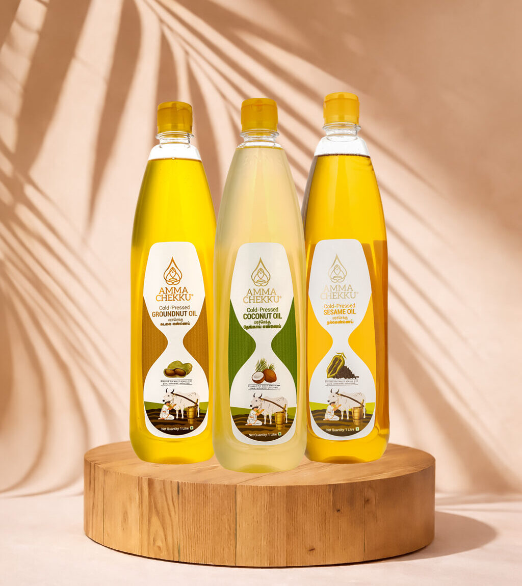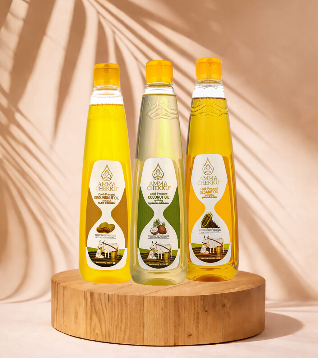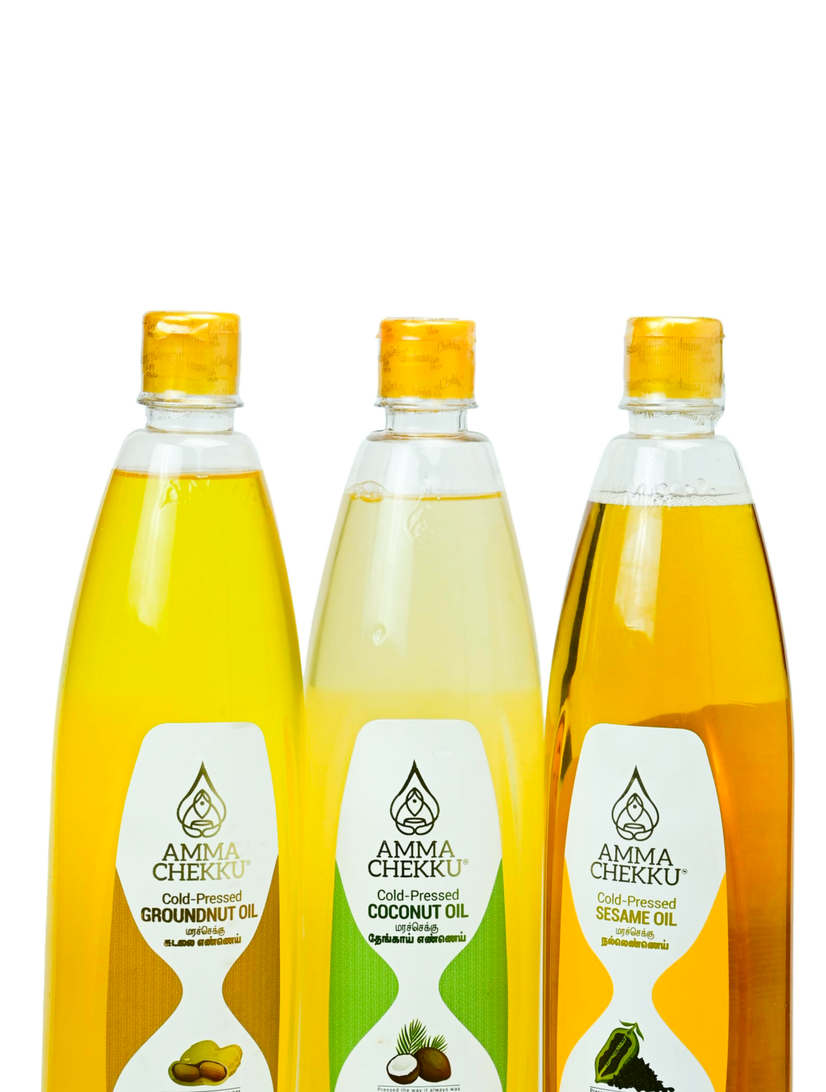 At Amma Chekku, purity begins with carefully chosen, naturally grown ingredients sourced from trusted farmers. Our oils are gently extracted using traditional wooden mills, without additives, preservatives, or refining.Every step, from sourcing to bottling, is handled with care, hygiene, and responsibility.